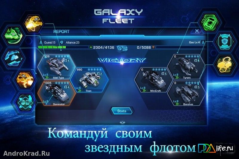 Вы находитесь на странице загрузки файла "Galaxy Fleet: Alliance War". Для того, чтобы скачать файл Galaxy Fleet: Alliance War с нашего портала, нажмите чуть ниже "Скачать" и вы попадете на страницу с загрузкой файла. При возникновении проблем, обратитесь к администрации. Описание Galaxy Fleet: Alliance War - В этой игре вам придется отправиться на край галактики и возглавить небольшую колонию. Вам придется путешествовать по многочисленным планетам в поисках жизненно важных ресурсов. Отбиваться от противников, создавать альянсы и захватывать чужие колонии и даже планеты! Все это и еще много интересного ждет вас в игре. Особенности игры: Тысячи игроков сражаются за территорию в ограниченном пространстве. Возможность создавать альянсы Возможность открывать новые земли Возможность детальной настройки боевых модулей кораблей Возможность захватить столицу и стать королем Русский язык: да